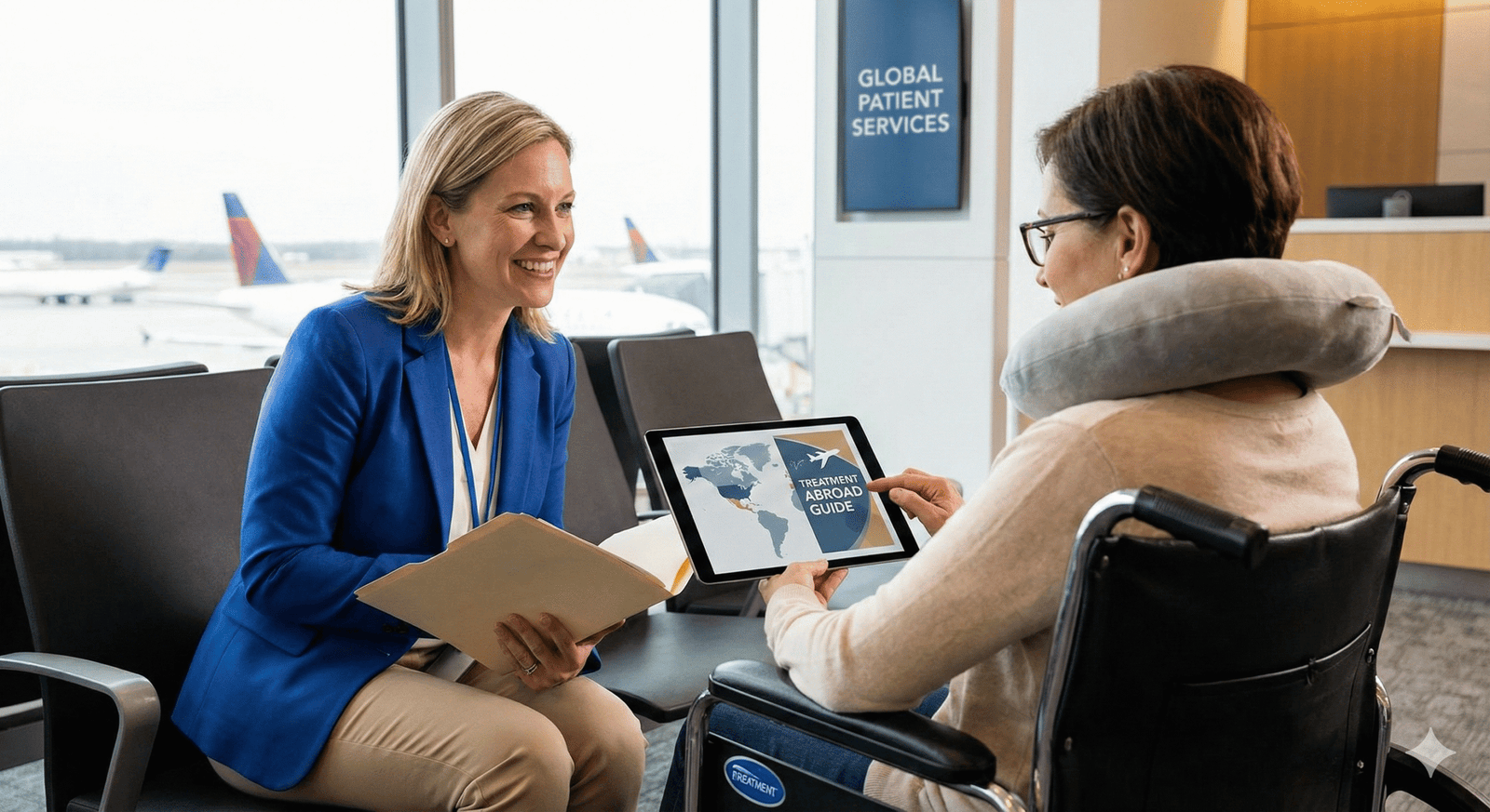 Patient support helps travelers manage medical care, travel, and stay during treatment in another country.